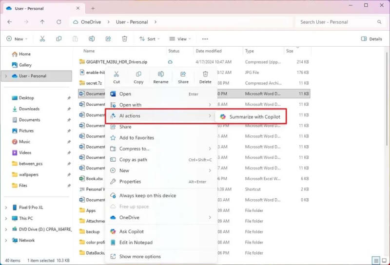 Đối với người dùng Microsoft 365, menu “AI Actions” còn cung cấp hành động “Summarize action in Copilot”. Tính năng này giúp tạo tóm tắt nội dung các tệp trên OneDrive và SharePoint một cách nhanh chóng, loại bỏ nhu cầu phải mở từng tệp.