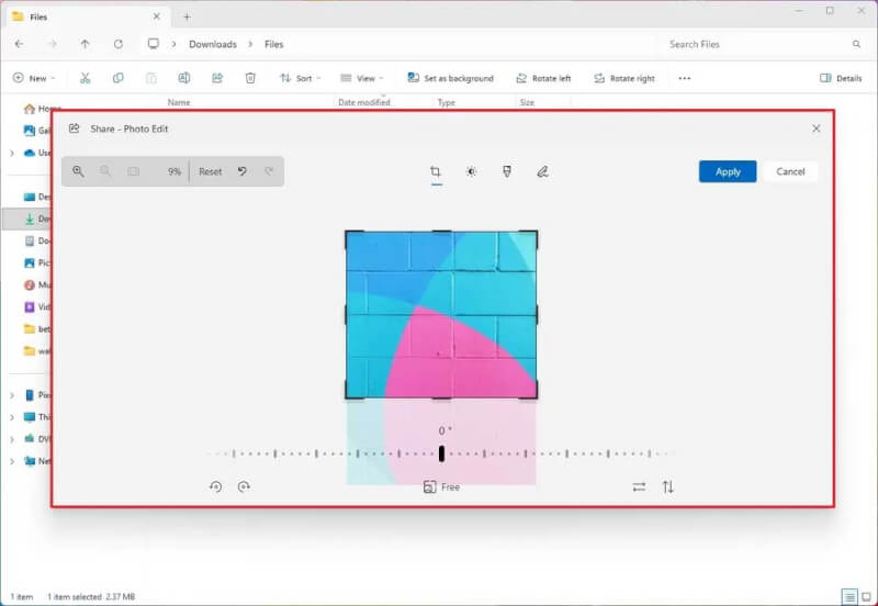Giao diện Windows Share hiện đã tích hợp các công cụ cho phép người dùng thực hiện các tác vụ chỉnh sửa hình ảnh khác nhau trước khi chia sẻ, bao gồm cắt (cropping), xoay (rotating) và thêm bộ lọc (filters).