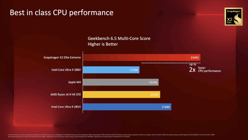 Snapdragon X2 Elite Extreme của Qualcomm đã thể hiện một sự nâng cấp vượt trội so với dòng chip X Elite trước đây. Điều này giúp nó có vị thế tốt hơn bao giờ hết để đối đầu với dòng chip M4 ấn tượng của Apple.