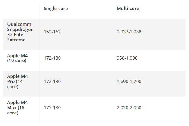 Tóm tắt: Snapdragon X2 Elite Extreme của Qualcomm đạt hiệu suất vượt trội hơn Apple M4 và M4 Pro trong các bài kiểm tra Geekbench 6.5. Chip này cũng vượt qua điểm đơn nhân của M4 Max, mặc dù M4 Max vẫn dẫn đầu ở bài kiểm tra đa nhân.