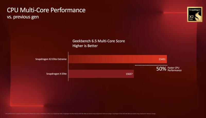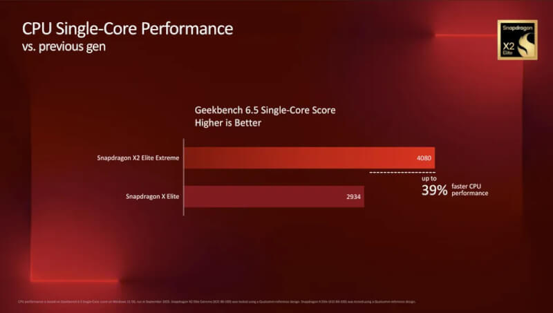 Ngoài ra, như đã đề cập, X2 Elite Extreme mới còn nhanh hơn 39% về hiệu năng đơn nhân so với Snapdragon X Elite đời đầu, vốn mới ra mắt vào tháng 6 năm 2024.