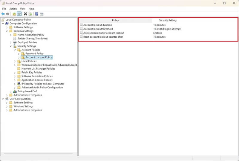 Mặc dù Windows 11 là một hệ điều hành có tính bảo mật cao, nhưng cấu hình mặc định của các chính sách khóa tài khoản lại thay đổi tùy thuộc vào từng phiên bản. Trong một thời gian dài, cài đặt mặc định là không khóa tài khoản, khiến hệ thống dễ bị tấn công brute-force.